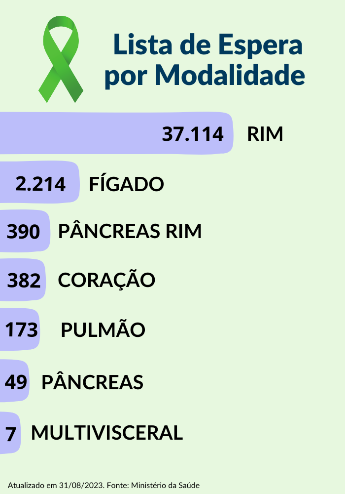 O Brasil possui o maior programa público de transplantes do mundo, que é garantido a toda a população por meio do SUS, responsável pelo financiamento de cerca de 88% dos transplantes no país. Apesar do grande volume de procedimentos de transplantes realizados, a quantidade de pessoas em lista de espera para receber um órgão ainda é grande.